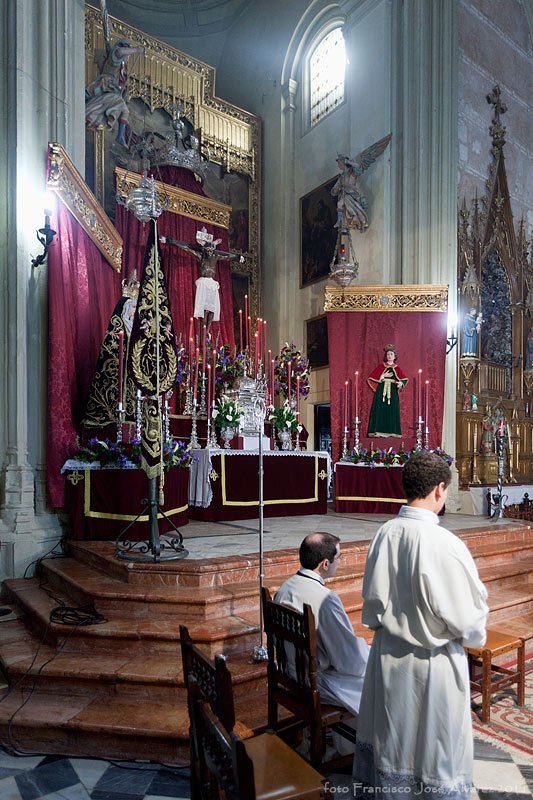 Estás en: INICIO > NOTICIAS > 2011 > SANTO CRISTO DE SANTIAGO Hermandad del SilencioQuinario y Función Solemne al Santo Cristo de Santiago Del 23 al 27 de febrero del presente se ha celebrado Solemne Quinario en honor al Stmo Cristo de Santiago, Patrono de Utrera, celebrado en la Parroquia de Santiago el Mayor de Utrera a las 20:00 horas, comenzando el rezo del Santo Rosario media hora antes. Posteriormente, el día 28 se celebro Solemne Función Votiva, ocupando la Sagrada Cátedra D. Antonio Mejías Vallejo, SDB del Colegio Salesiano Ntra. Sra. del Carmen de Utrera, acudieron los Hermanos Mayores de las diversas Hermandadades y Cofradías Utreranas, así como representantes de la autoridad local de Utrera y muchos fieles, el acto fue armonizado por el Coro de Cámara Nova Música de Cádiz. Estás en: INICIO > NOTICIAS > 2011 > SANTO CRISTO DE SANTIAGO |