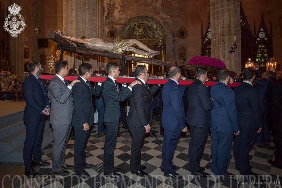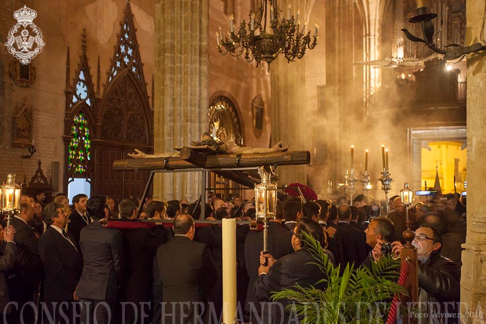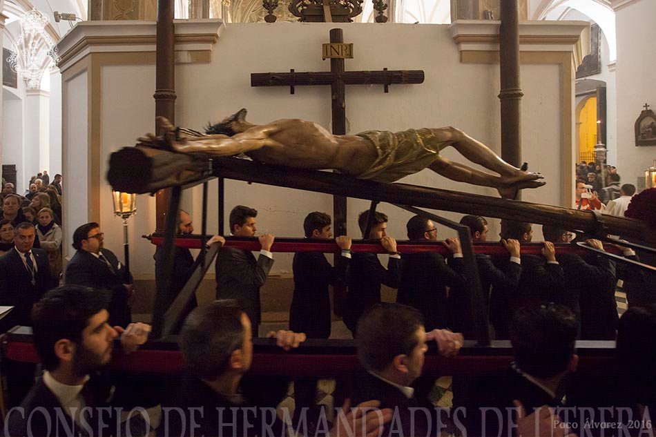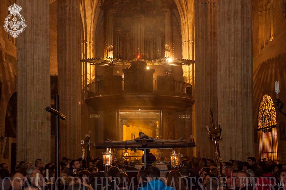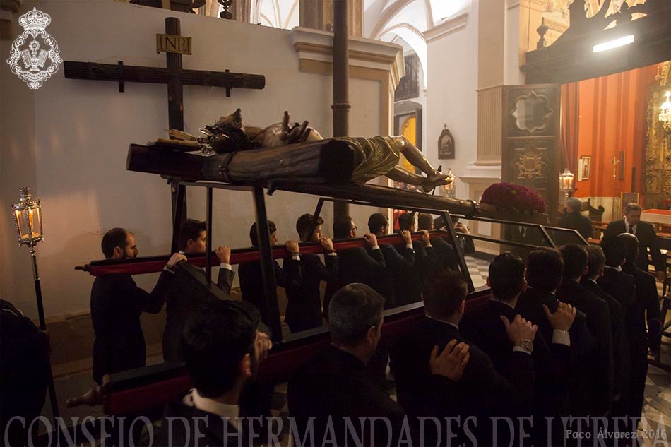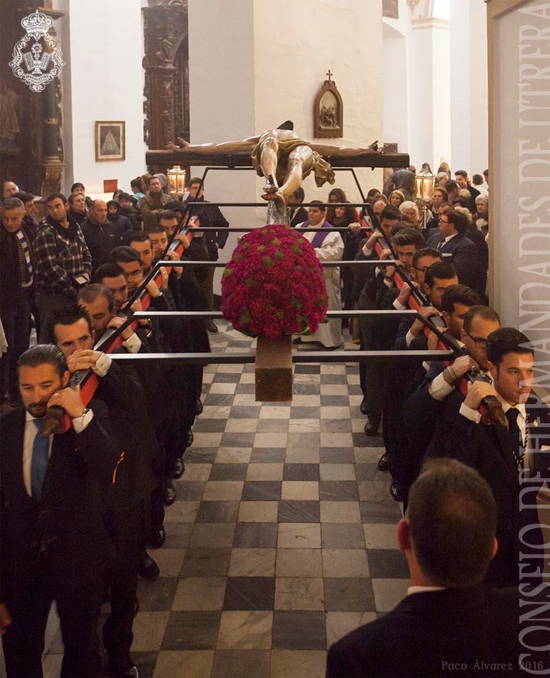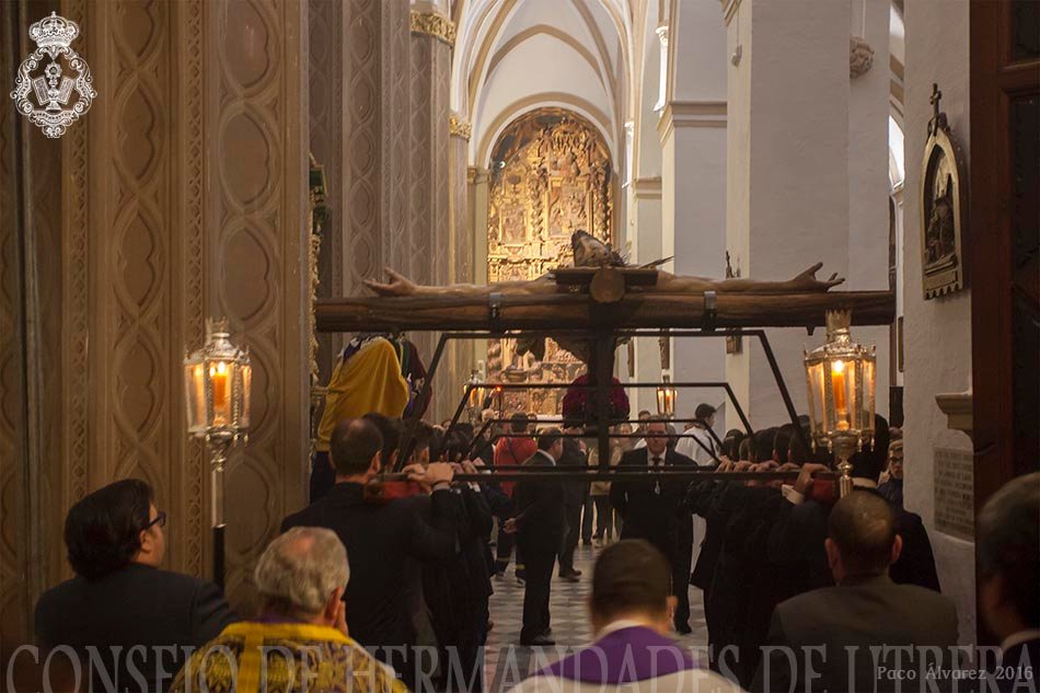 Tras finalizar el acto y una vez toda la comitiva en la Parroquia de Santiago, el Stmo. Cristo del Perdón fue de nuevo trasladado esa misma noche hasta su altar dentro del Santuario de Consolación.