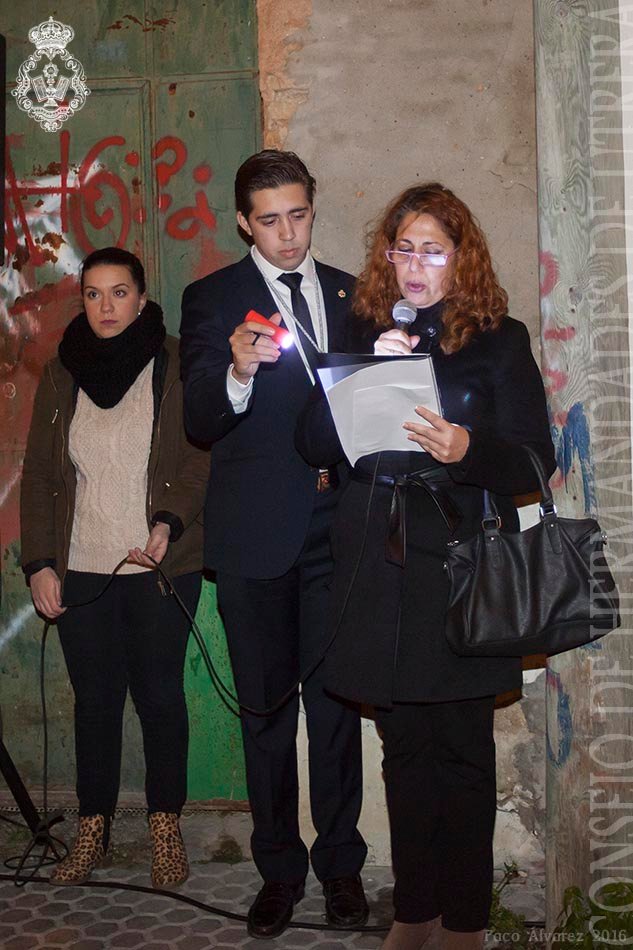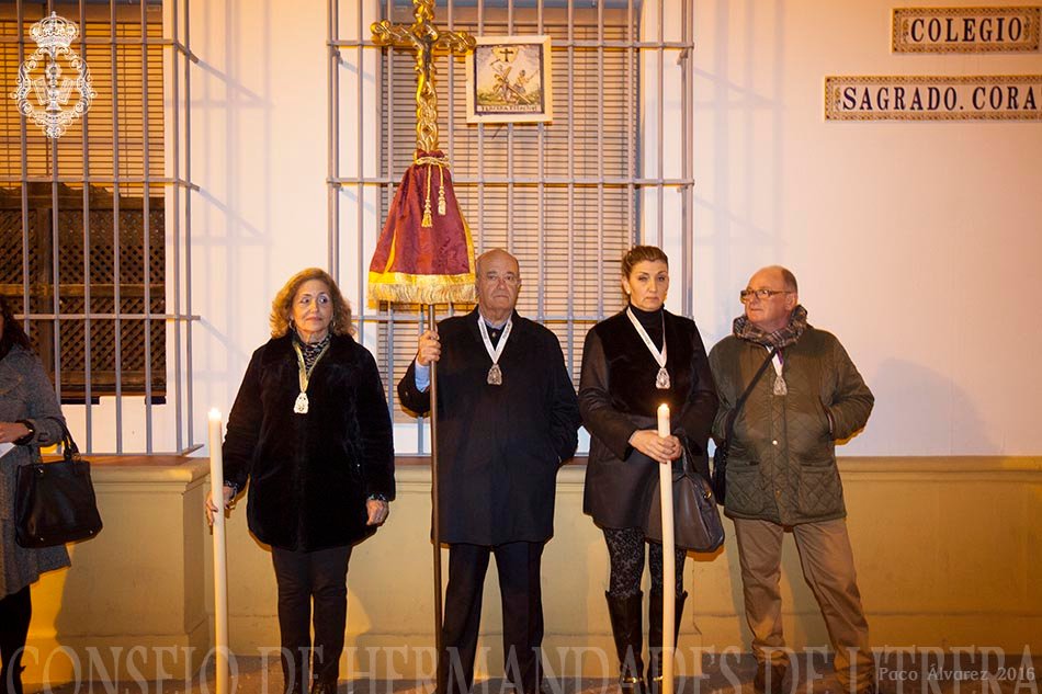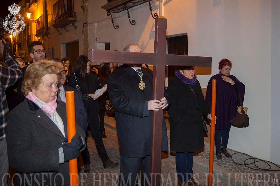 En cada una de las Estaciones de Penitencia, señaladas por los nuevos azulejos realizados por los alumnos del Instituto José María Infantes, se fueron colocando sucesivamente las Cruces de Guía de las diferentes Hermandades Utreranas mientras se rezaba el Vía Crucis.