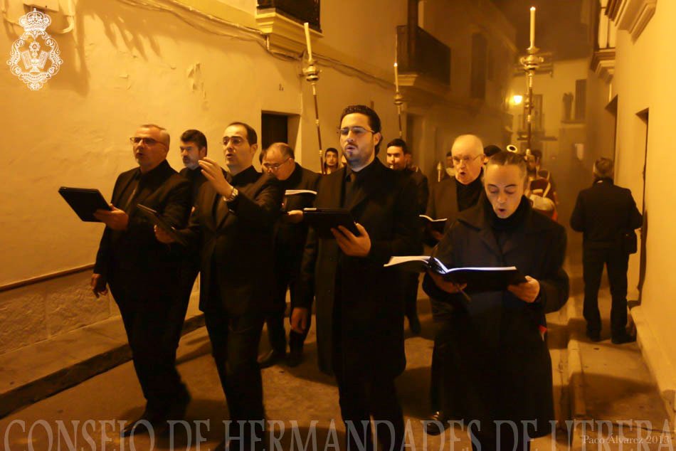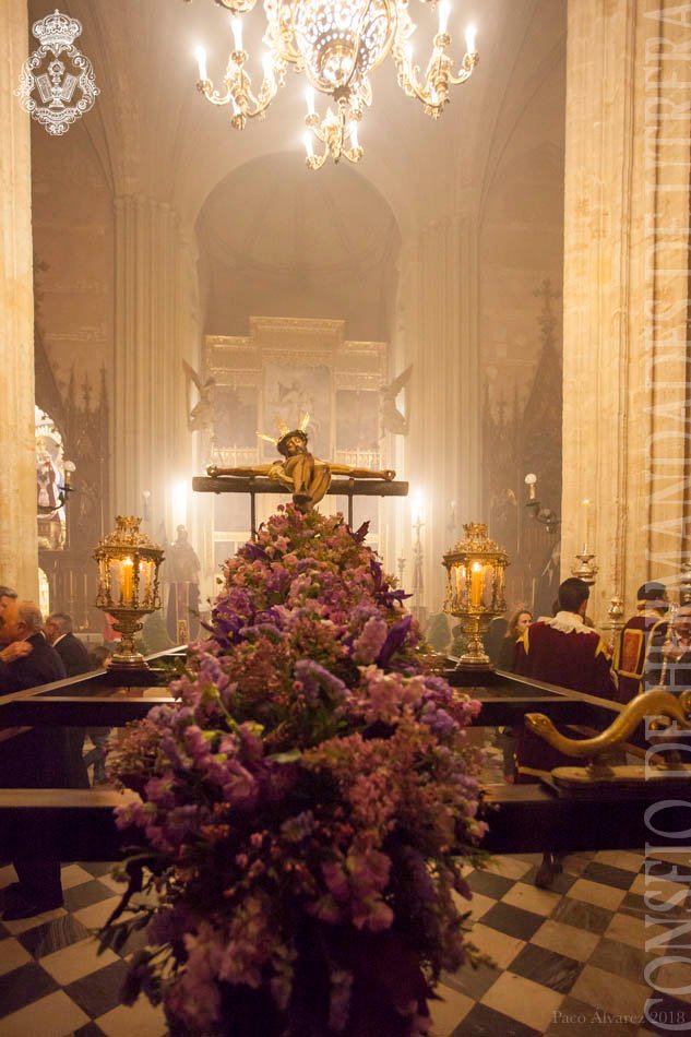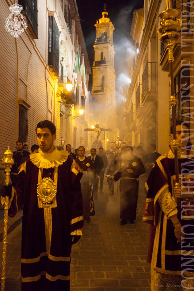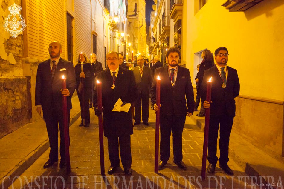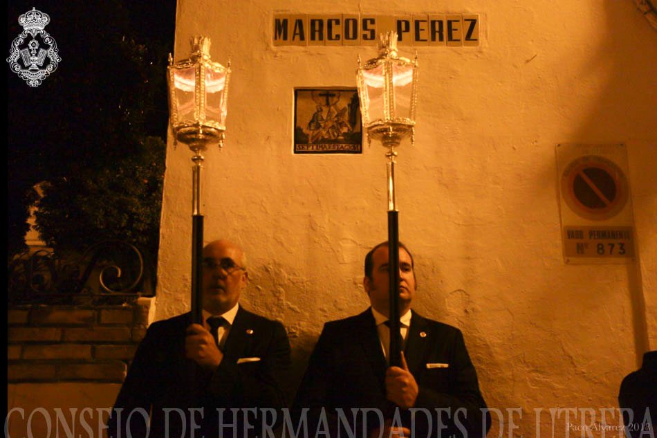 I – Sor Marciala de la Cruz, II – Santa Ángela de la Cruz, III – Santa Ángela de la Cruz, IV – Santa Ángela de la Cruz, V – San Fernando, VI – San Fernando, VII – Marcos Pérez, VIII – Rodrigo Caro, IX – Rodrigo Caro, X – La Plaza, XI – Perafán de Rivera, XII – Ponce de León, XIII – Ponce de León, XIV – Santiago El Mayor, Rezo final Parroquia de Santiago El Mayor.
