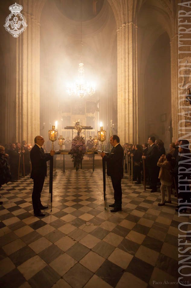 Devoto Vía Crucis del Consejo de Hermandades y Cofradías de Utrera celebrado el pasado domingo 18 de febrero, presidido por la venerada imagen del Stmo. Cristo de la Buena Muerte (Hermandad de Los Gitanos).